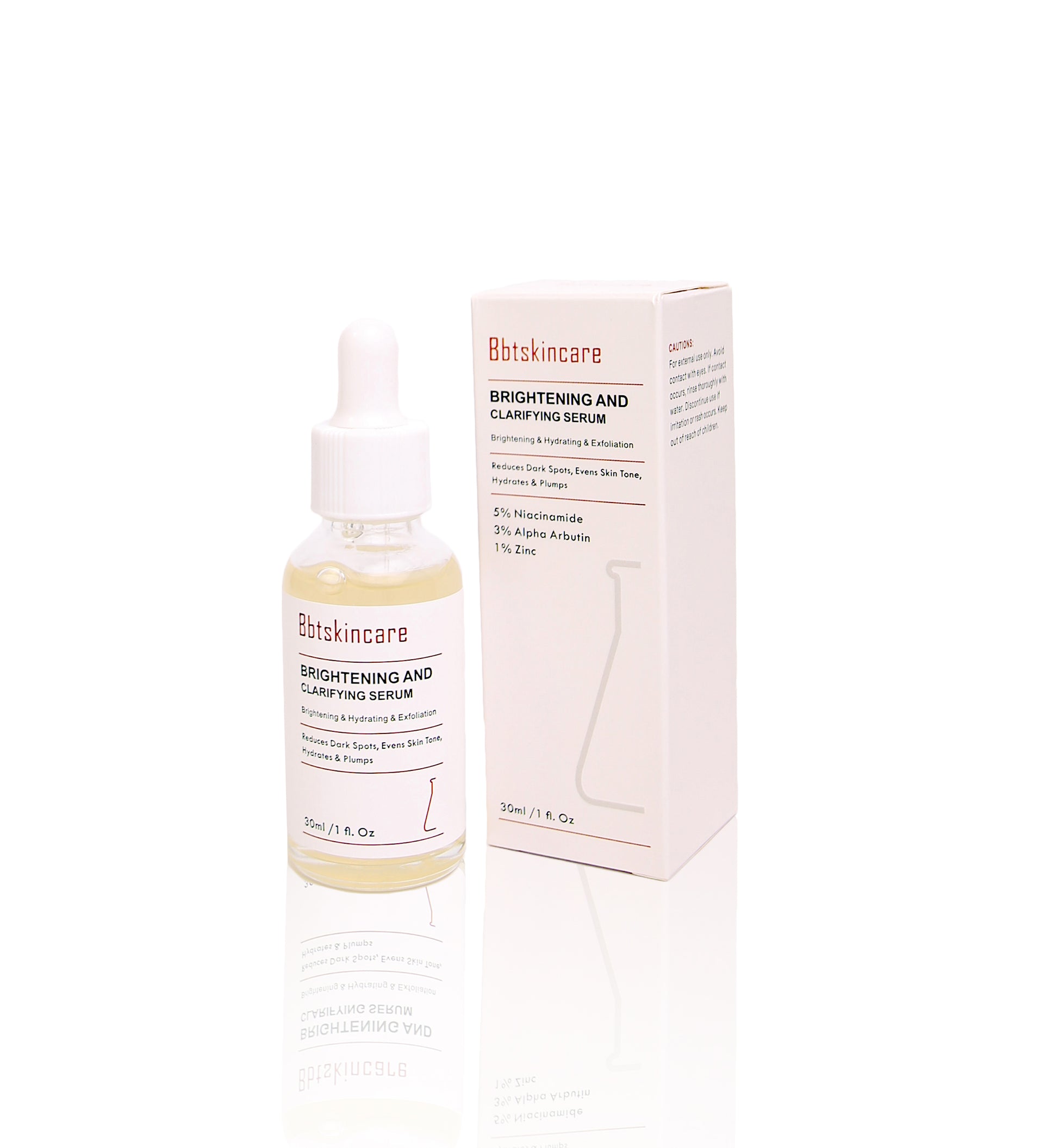 Our Brightening And Clarifying Serum is formulated with a powerful blend of active ingredients, this serum works to brighten, hydrate, balance, and protect your skin. Perfect for all skin types, it targets uneven skin tone, dryness, and environmental damage.