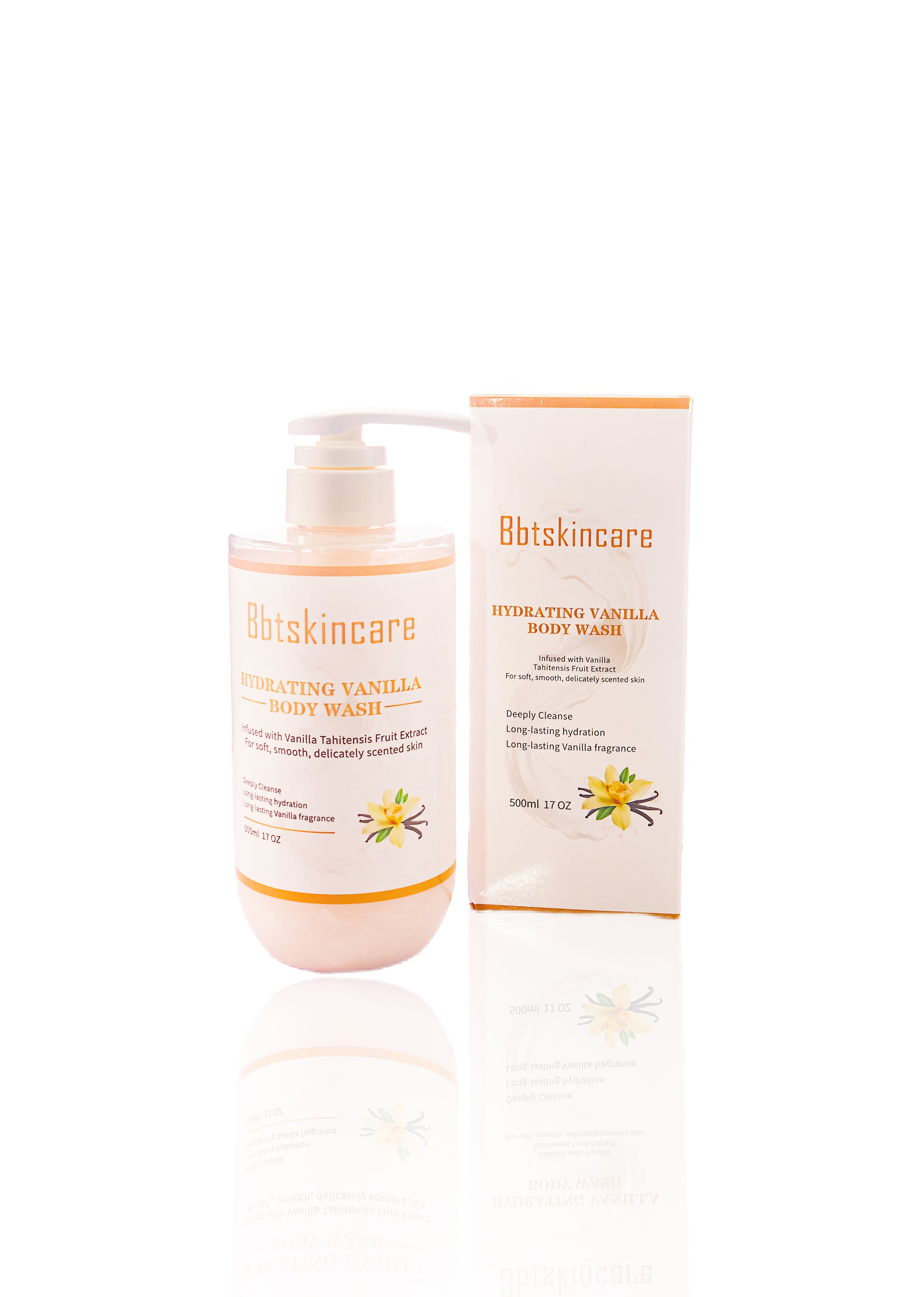 DESCRIPTION: Infused with Vanilla Tahitensis Fruit Extract, this hydrating body wash gently cleanses while caressing your skin in a creamy, refreshing lather. It leaves your body soft, smooth, and delicately scented with the warm, comforting essence of vanilla. Each use transforms your daily shower into a soothing ritual of indulgence, wrapping you in lasting hydration and serenity.